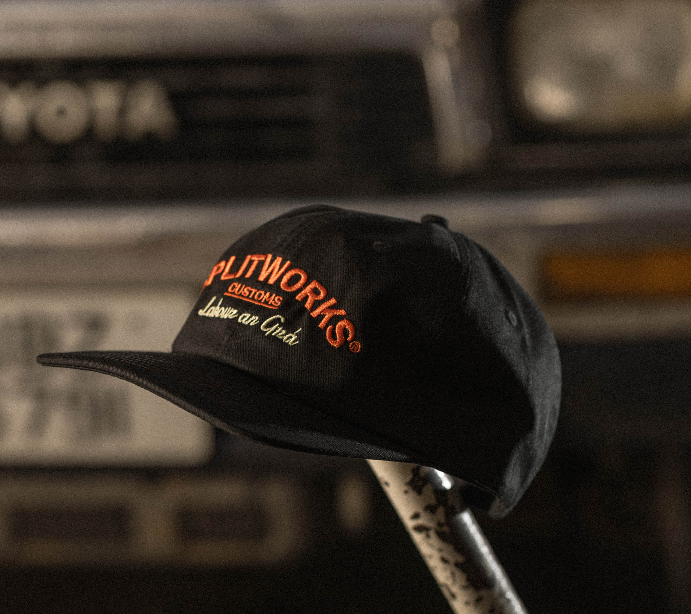 The Splitworks 6-panel wordmark cap is a clean, comfortable hat made from 100% cotton twill. It features direct embroidery of the Splitworks wordmark logo in orange and white. It’s finished with a black adjustable strap with metal fastener for an easy reliable fit. This is a hard wearing workwear had, designed to be worn, get dirty and hide and earn its built to last.