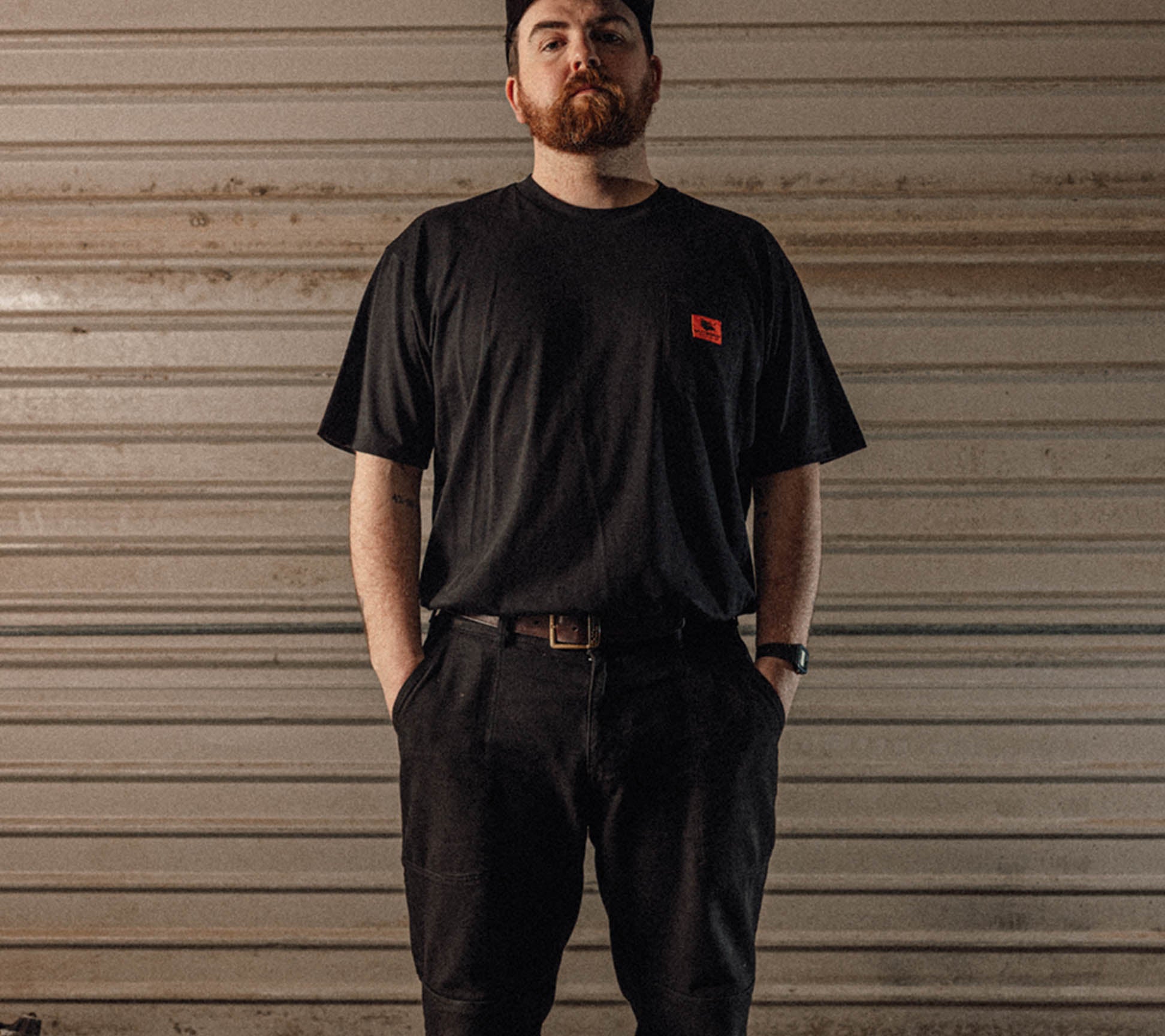 A black pocket tee rooted in vintage motorcycle culture and Irish workwear tradition.